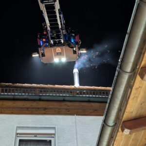 • Kontrolle des Kamins durch einen Trupp unter PA über die Drehleiter